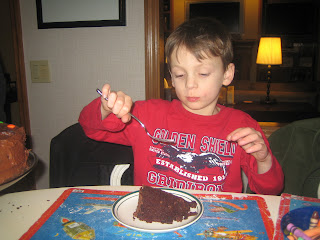 The day after he got to continue the celebration by having 5 friends over for a small birthday party. His friends were over from 3 to 6pm. They were all very well behaved and had fun playing with the wii and LEGOS and then enjoyed pizza and cake - that's right, Brenden who doesn't like pizza wanted it two days in a row. Brenden had a great time and it was really nice to see him play with all of his friends and be the center of attention. He proclaimed it another great day!